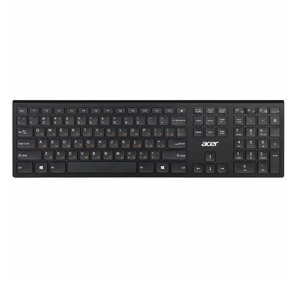 Тип устройства: клавиатура (беспроводная)Назначение: для ПКПодключение:Интерфейс: радиоканалРадиус действия: до 10 мКонструкция:Тип клавиатуры: мембранная, беспроводнаяКонструкция: полноразмернаяКоличество клавиш: 103Дополнительные клавиши: 5Цифровой блокДополнительные опции: регулятор громкости звукаМатериал корпуса: пластикРазмеры и вес:Ширина: 436 ммВысота: 25 ммГлубина: 124.6 ммВес: 442 г