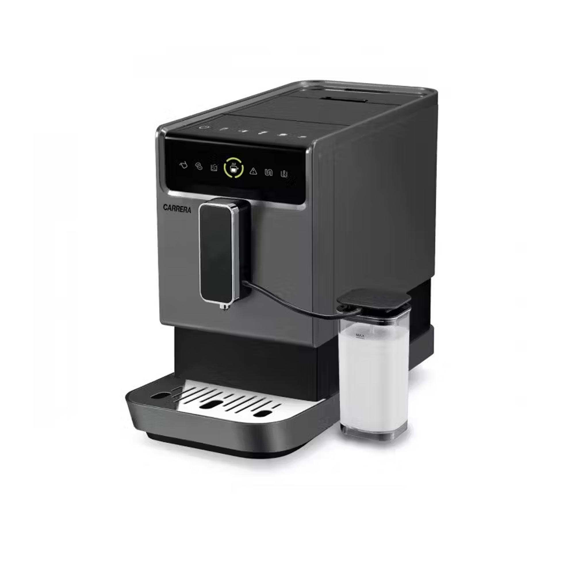 Тип используемого кофе: ЗерновойТип конструкции: АвтоматическаяДавление: 19 барМощность: 1450 ВтПриготовление напитков: Эспрессо, Капучино, Латте макиатоУправление: СенсорноеВстроенная кофемолкаРегулировка степени помола: 5 степенейОбъем резервуаров: Вода — 1,2 л / Молоко — 0,24 л / Зерна — 150 гТип капучинатора: АвтоматическийСъемные элементы: Резервуары для воды, капель, молока и использованного кофеФункции: Автоматическое выключение, Подача горячей воды, Регулировка объема порции, Система предварительного смачивания, Энергосбережение, Звуковой сигналОчистка: Автоматическая промывкаИндикация: Готовности к работе, Отсутствия воды/кофе, Заполнения отсека для отходов, Необходимости очисткиМатериалы корпуса: Металл, пластикМатериал решетки каплесборника: МеталлМатериал кофемолки: МеталлГабариты: 31.5 × 18 × 40.7 смВес: 8.39 кгВысота дозатора: 75–150 ммОсобенности: Подсветка чашек, Контейнер для молока в комплекте