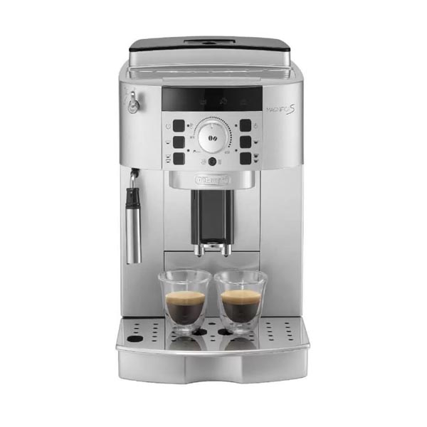 Автоматическая кофемашинаОтдельностоящаяИспользуемый кофе — зерновойТип напитка — эспрессоДавление помпы — 15 барПотребляемая мощность — 1450 ВтСистема нагрева — термоблокДисплей Индикатор очистки от накипи Объем резервуара для воды — 1.8 лОбъем резервуара для кофе — 250 гОдновременное приготовление двух чашекПодача горячей водыМаксимальная высота чашек — 14.2 смПодогрев чашекКапучинатор — ручнойАвтоматическая очистка капучинатораТип управления — механическоеРегулировка крепости кофе Количество кофемолок — 1Регулировка степени помола Съемный поддон для капельМатериал решетки поддона — металлМатериал корпуса — пластикЦвет корпуса — серебристыйДлина сетевого шнура — 1.15 мВысота — 35.1 смШирина — 23.8 смГлубина — 43 смВес — 9 кг