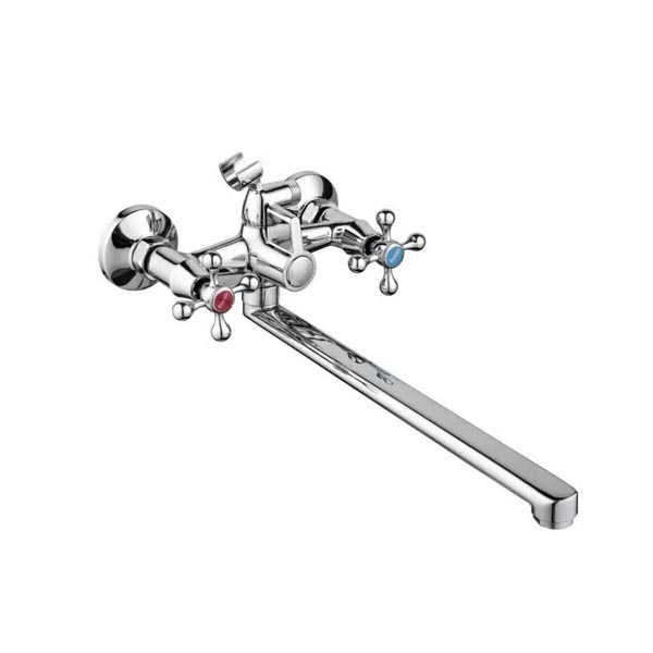 Покрытие: хромИзлив, поворотныйФорма излива: традиционнаяДлина излива: 473 ммУправление: механическое (кран-букса, форма маховиков «крестик»)Запорный клапан: керамическая кран-буксаАэраторЛейкаСтандарт подводки: 1/2"