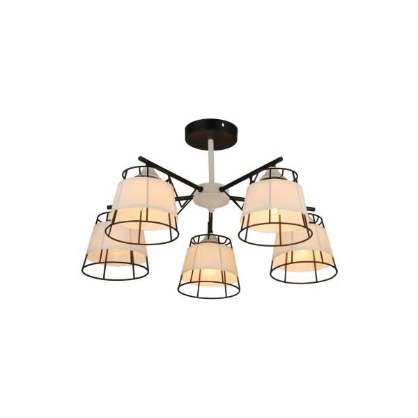 Светильник оснащен пятью плафонами с направлением света вниз. Плафоны выполнены из матовой ткани и металла, что создает мягкое и комфортное освещение.