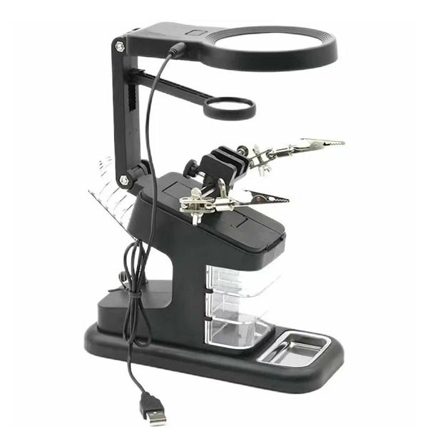 Цоколь: встроенные LEDДиаметр: 22, 30, 72 ммДлина: 18,5 смШирина: 11,5 смВысота: 23 смПодсветкаУвеличение: 2,5–25×Материал основания: пластикЦвет основания: черныйОттенок рассеивателя: тёмные тонаМатериал рассеивателя: пластикЦвет рассеивателя: черныйФорма рассеивателя: круглыйНаправление рассеивателя: поворотноеУправление светильником: с выключателем на корпусеТип крепления: на подставкеТип источника освещения: лампа в комплектеВид: хай-текТип питания: от батареекОсобенности: с зажимом, с подсветкой, с лупойРазмеры (Д × Ш × В): 18,5 × 11,5 × 23 смВес брутто: 632 г