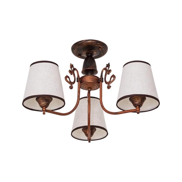 Высота 35 смШирина 57 смДлина 57 смЦоколь E27Цвет каркаса Коричневый, патинированиеМатериал каркаса МеталлЦвет плафона БежевыйМатериал плафона ТекстильТип лампы НакаливанияМакс. мощность одной лампы 60 W