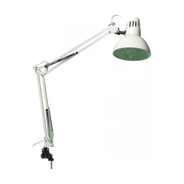 Вид крепления: на струбцинеМощность светильника: 40 ВтМощность лампы: 40 ВтТип лампы: накаливанияТип подключения: шнур с вилкойНапряжение питания: 220 ВЦоколь: E27Степень защиты: IP20Материал корпуса: металлМатериал плафона: металлПоверхность плафона / арматуры: глянцевая / глянцеваяЦвет корпуса: белыйЦвет плафона: белыйМаксимальная высота: 800 ммГабариты без упаковки: 90 × 200 × 415 мм