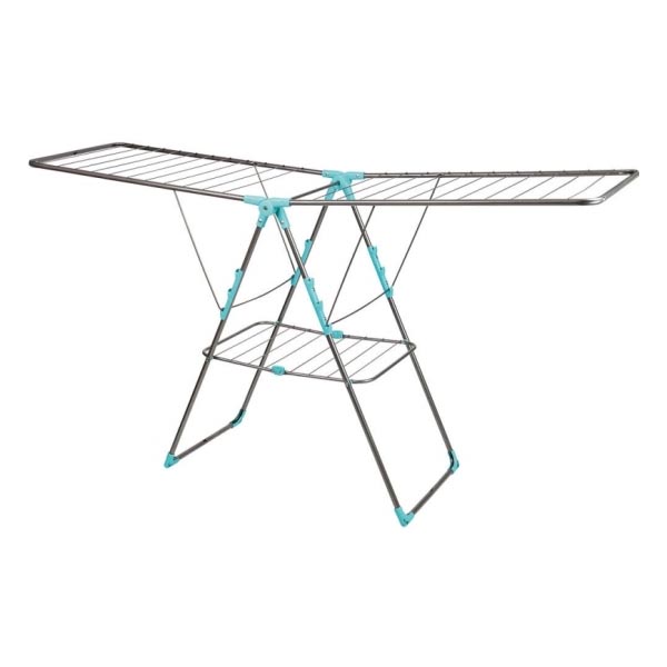 Тип размещения: напольнаяПолезная поверхность: 18 мМаксимальная нагрузка: 15 кгКоличество ярусов: двухъяруснаяКоличество реек: 30 штСтворки сушки: откидныеКонструкция сушки: складнаяМатериал струн сушки: металлМатериал корпуса сушки: металл/пластикРазмеры в сложенном виде (Ш×В×Г): 101 × 8 × 51.5 смРазмеры в разложенном виде (Ш×В×Г): 181.5 × 93 × 51.5 смВес товара: 4.17 кг