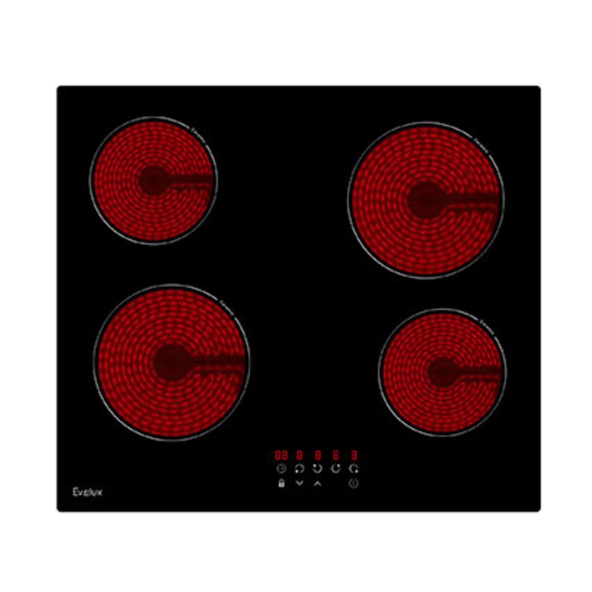 Габариты: 5x59x52 смГабариты ниши для встраивания: -x56x49 смТип поверхности: стеклокерамикаКоличество конфорок: 4 быстрого нагреваМалая конфорка, мм/ Вт: 165 мм / 1200 Вт (2шт.)Средняя конфорка, мм / Вт: 200 мм макс. 1800 Вт (2шт.)Индикаторы остаточного тепла для каждой конфоркиУправление и функции:Сенсорное управлениеТаймер: 1-99 минУровней мощности: 9Безопасность:Блокировка от детейЗащитное отключениеДополнительная информация:Сетевое напряжение (В): 220-240Частота тока (Гц): 50-60Потребляемая мощность (Вт): 6000Вилка питанияШнур питанияДлина шнура питания (м): 1Вес: 7.65 кг