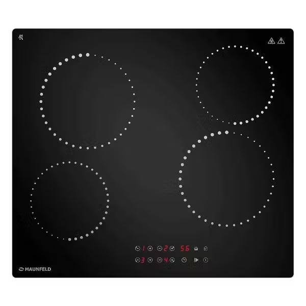 Тип: независимая варочная поверхностьМатериал рабочей поверхности: стеклокерамикаКоличество конфорок: 4Рамка: без рамкиЦвет: черныйКласс энергопотребления: AПрисоединительная мощность: 6 кВтКонфоркиКонфорка 1: Hi-Light, 1.2 кВт, Ø 16.5 смКонфорка 2: Hi-Light, 1.8 кВт, Ø 20 смКонфорка 3: Hi-Light, 1.2 кВт, Ø 16.5 смКонфорка 4: Hi-Light, 1.8 кВт, Ø 20 смУправлениеТип управления: сенсорноеРасположение панели: спередиТаймер: с функцией отключенияДисплей (красная подсветка символов)Звуковой сигналФункции и индикацияБыстрый нагревИндикация включенияИндикация остаточного теплаИндикация выбранной мощностиРежим паузыБезопасностьЗащита от детейАварийное отключениеГабаритыВысота: 5.2 смШирина: 59 смГлубина: 52 смРазмеры ниши для встраивания: 56 × 49 × 4.8 см