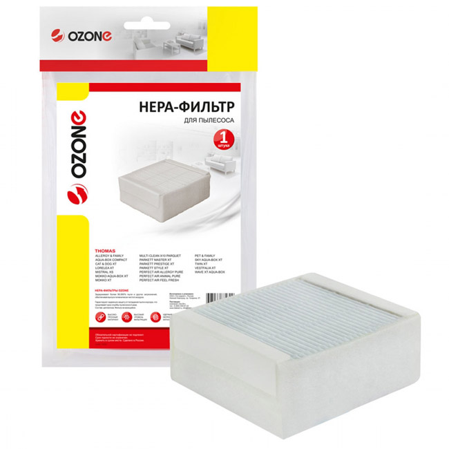 HEPA фильтр Ozone H-16 - для эффективной фильтрации самых мелких частиц. Ozone H-16 удаляет из воздуха мелкодисперсные частицы - данный фильтр станет отличным решением для людей, страдающих от астмы или аллергии. HEPA фильтр предназначен для использования в пылесосах THOMAS.
