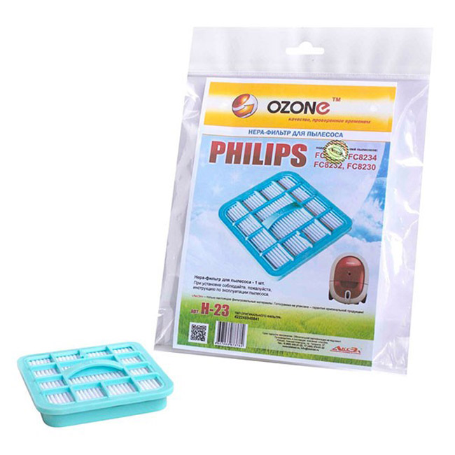 Производитель: OzoneСтрана производства: РоссияКод производителя: H-23Гарантия: Гарантия производителяКоличество в упаковке (шт.): 1Фильтр для пылесоса: Philips FC82.., OZONE microne H-23Подходит для пылесоса Philips:FC8236FC8234FC8232FC8230Тип оригинального фильтра: 422245948841