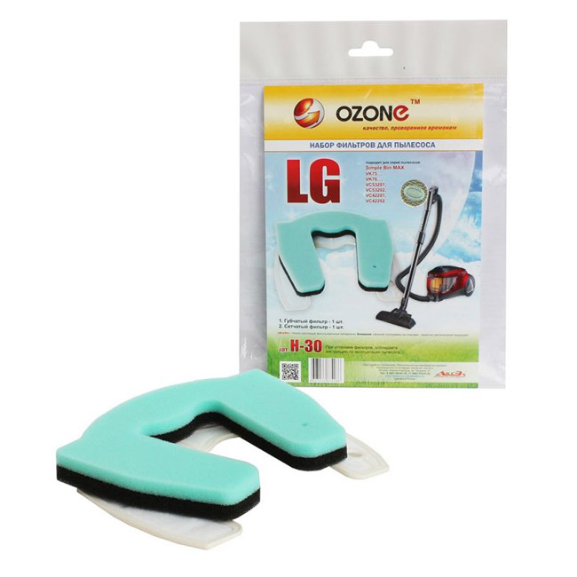 HEPA фильтр Ozone H-30 подходит для пылесосов: LG Simple Bin MAX: VC53201, VC53202, VC42201, VC42202, VK75101, VK75102, VK75103, VK75204, VK75205, VK75206, VK75301, VK75302, VK75303, VK75304, VK75305, K76101, VK76102, VK76103
