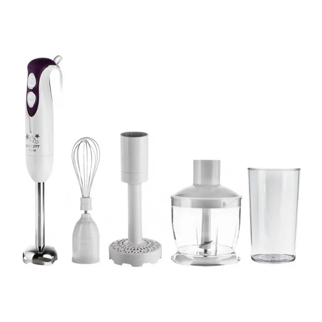 Основные характеристикиТип: погружнойМаксимальная мощность: 700 ВтУправление: механическое, число скоростей: 2Функциональные возможностиДополнительные режимы: турборежим, насадка для приготовления пюре Измельчитель, объем 0.5 лМерный стакан, объем 0.6 лВенчик для взбиванияОсобенностиМатериал корпуса: пластикМатериал погружной части: металл