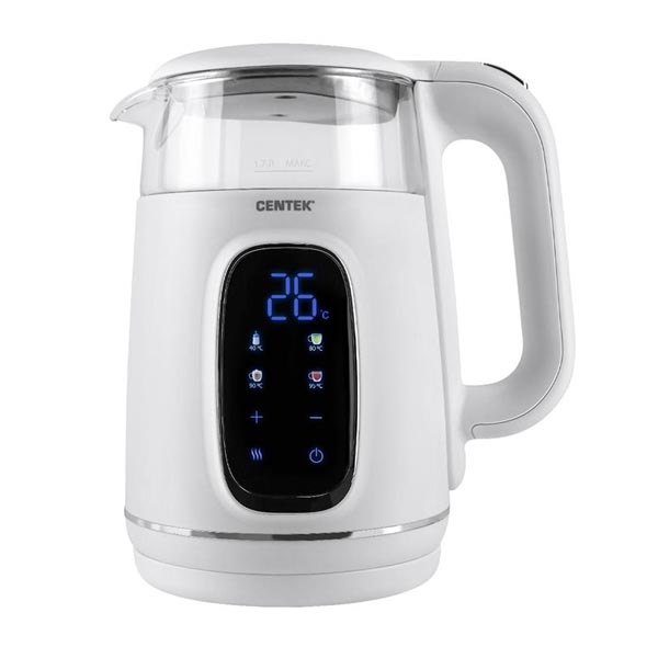 Объем – 1.7 лМощность – 2200 ВтКорпус:Материал – пластик, стеклоТип нагревательного элемента – закрытый (скрытая спираль)Управление и индикация:Количество режимов – 5Скрытый LED-дисплей Очистка:Фильтр от накипи Безопасность:Защита от включения без воды Защита от перегрева Дополнительные функции:Поддержание температуры