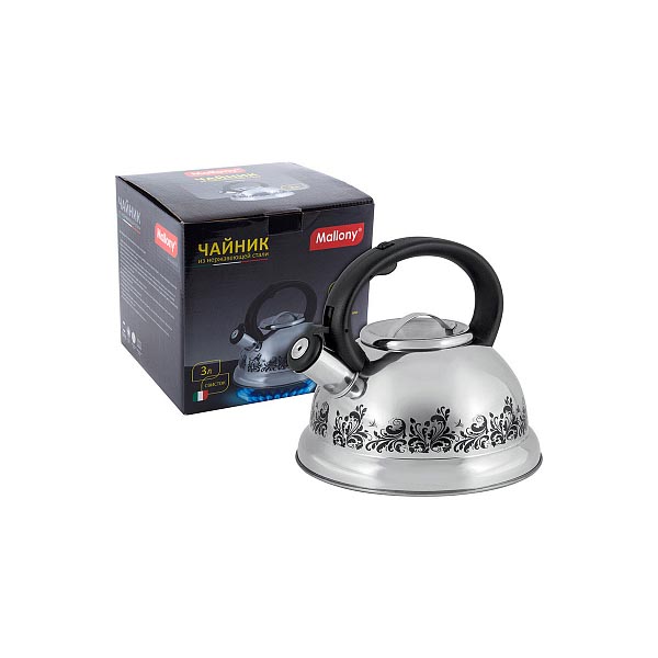 Полированный, внутри - матовый.Стальная крышка.Ручка - пластик.Со свистком.Подходит для всех типов плит.Не рекомендуется мыть в посудомоечной машине.Предназначен для кипячения разного количества воды.Объем: 3 лМатериал: нержавеющая сталь 201, пластикТолщина стали: 0,4 ммКапсулированное 3-х слойное дно: (0,5 мм алюминий + 1,5 мм железо + 0,5 мм алюминий: подходит для индукции)
