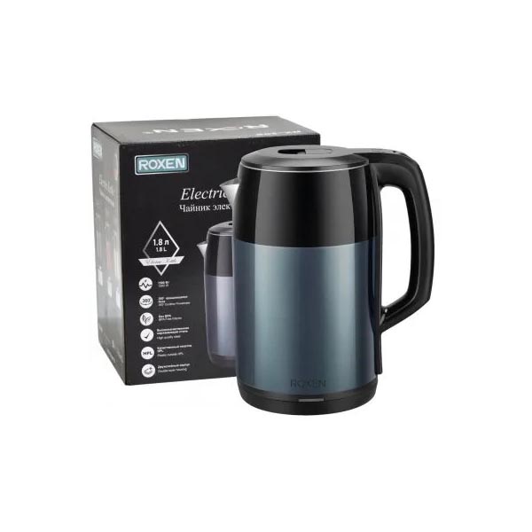 Мощность 1500Вт. Объем 1,8л. Двойной корпус пластик/сталь. Автоматическое отключение при закипании. Возможность поворота на 360 градусов