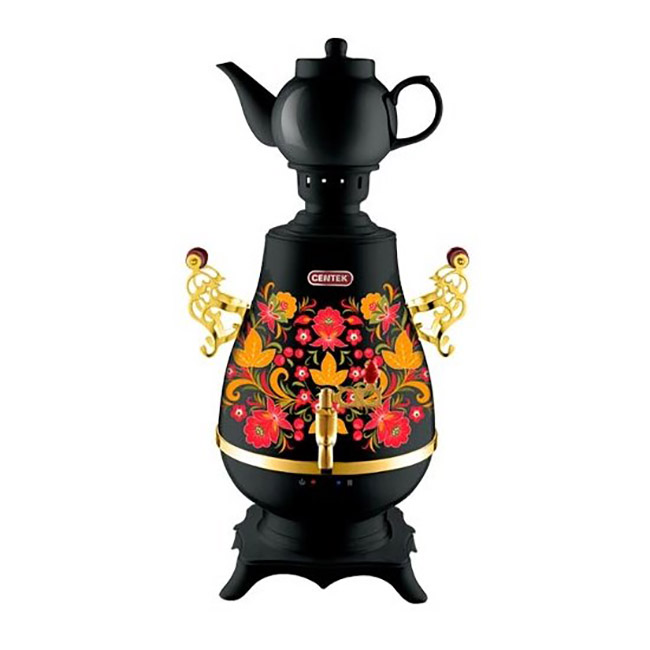 Технические характеристики:Тип - самоварОбъем - 4 лМощность - 2300 ВтТип нагревательного элемента - закрытая спиральЗаварочный чайникОбъем заварочного чайника - 1000 млМатериал заварочного чайника - керамикаОсобенности:Безопасность - блокировка включения без водыФункции - индикация включенияРисунок на корпусе