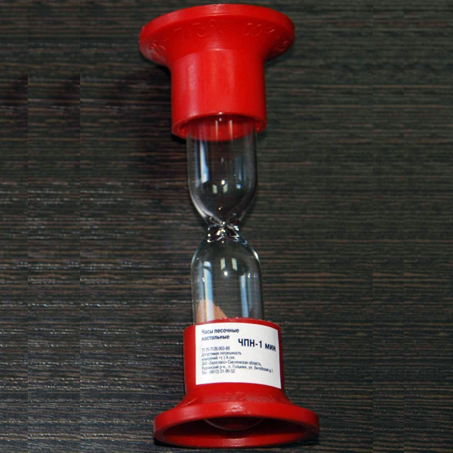 Характеристики:Тип - часыВид - песочныеРазмещение - настольноеИнтервал измерения времени - 1 минутаПогрешность - 4 секундыМатериалы - стекло / пластикПесок - кварцевыйВысота - 115 ммДиаметр - 19 ммУпаковка - блистер