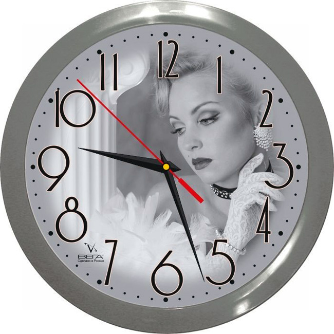 Характеристики:Тип - часыРазмещение - настенныеТип механизма - кварцевыйИндикация времени - стрелочнаяИсточник питания - элемент AA (не в комплекте)Материал корпуса - пластикФорма корпуса - круглаяЦвет - серебристыйРисунок на лицевой частиДиаметр - 290 ммОсобенности:Плавный ход секундной стрелки