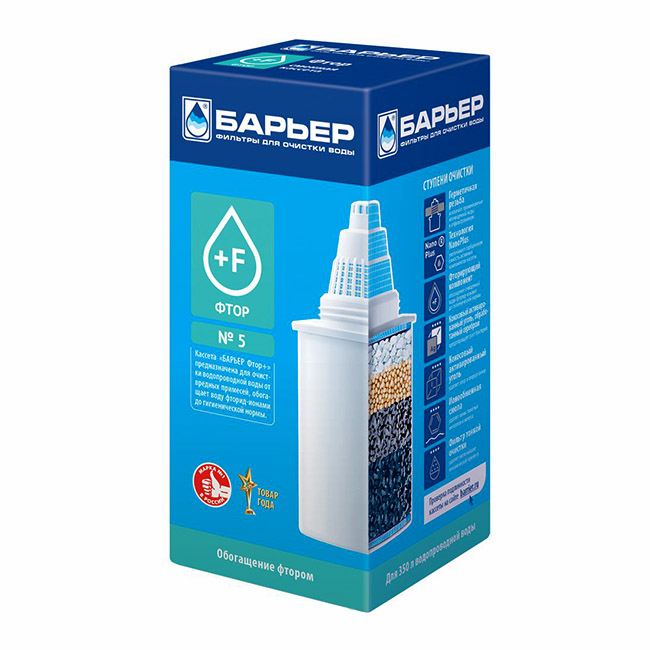Основные характеристики:Тип устройства - картридж сменный для фильтра-кувшинаИспользование - для холодной водыТемпература очищаемой воды - +5°C ... +40°CЭффект - очистка от вредных органических и неорганических примесей, а также обогащает воду фторид-ионами до гигиенической нормыСовместимость с моделями фильтров-кувшинов:Барьер Классик, Барьер Лайт, Барьер СтандартРесурс - 350 лРазмеры упаковки - 64 х 64 х 146 ммВес - 0,16 кг
