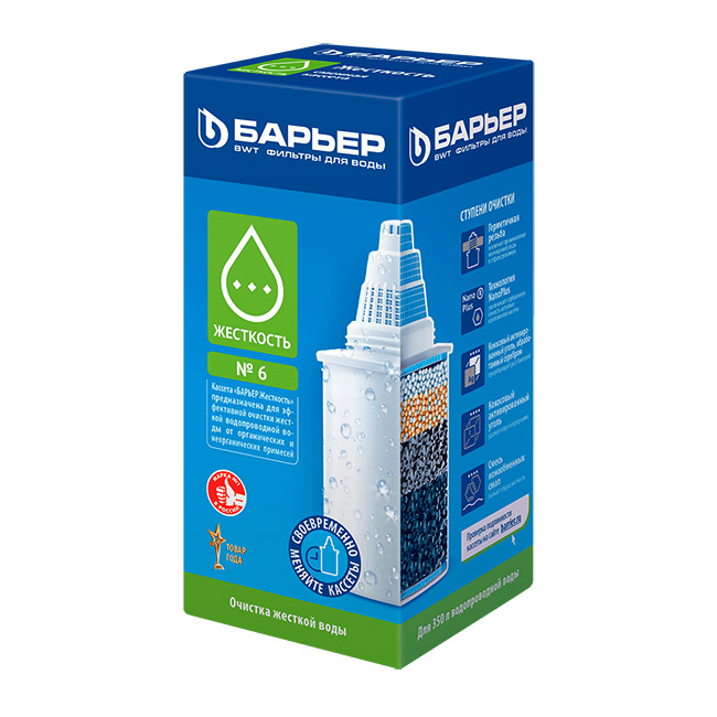 Основные характеристики:Тип устройства - картридж сменный для фильтра-кувшинаИспользование - для холодной водыТемпература очищаемой воды - +5°C ... +40°CЭффект - очистка от активного хлора, хлороформа, фенола, ПАВ, железа, ионов тяжелых металловСовместимость с моделями фильтров-кувшинов:Барьер Смарт, Барьер Экстра, Барьер Гранд Нео, Барьер Гранд, Барьер Эко, Барьер Твист, Барьер Норма, Барьер Классик, Барьер Лайт, Барьер Стайл, Барьер ПремияРесурс - 350 лРазмеры упаковки - 64 х 64 х 146 ммВес - 0,15 кг