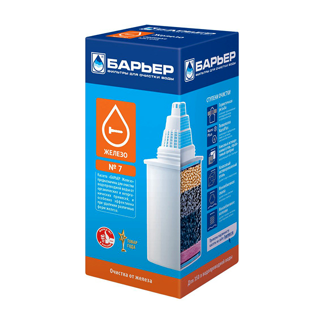 Основные характеристики:Тип устройства - картридж сменный для фильтра-кувшинаИспользование - для холодной водыТемпература очищаемой воды - +5°C ... +40°CЭффект - очистка от железа и тяжелых металлов, хлора, хлорорганических примесейСовместимость с моделями фильтров-кувшинов:Барьер Классик, Барьер Лайт, Барьер СтандартРесурс - 350 лРазмеры упаковки - 64 х 64 х 146 ммВес - 0,13 кг