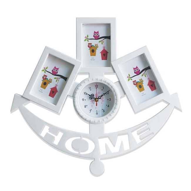 Часы с фоторамками-это прекрасный предмет декора, а также универсальный подарок практически по любому поводу. Корпус часов, выполнен из полипропилена белого цвета и оформлен тремя фоторамками. Циферблат часов оснащен тремя стрелками: часовой, минутной и секундной. Часы с фоторамками прекрасно впишутся в любой интерьер. В зависимости оттого, что вы поместите в рамки, будет меняться и стиль часов. Размеры габаритные - 46,5х43х4,5 смРазмеры фоторамок - 10х15 смДиаметр часов - 12 см