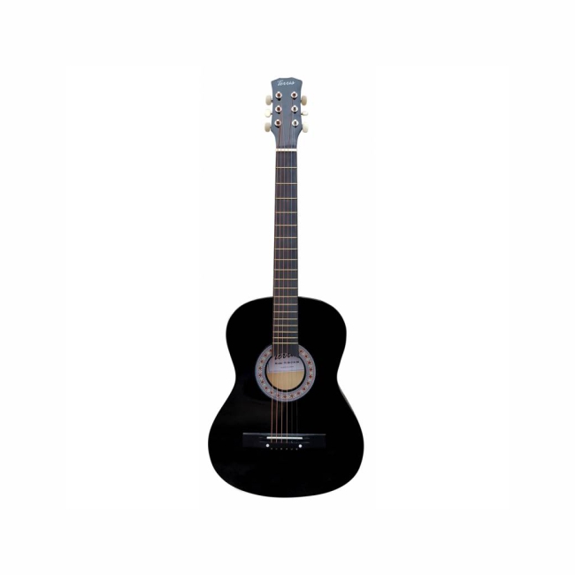 Общие характеристики:Акустическая гитара, чернаяФорма корпуса - фолкВерхняя дека - липаЗадняя дека и обечайка - липаГриф c анкерным стержнемНакладка грифа - крашеный кленБридж - крашеный кленЦвет - черный