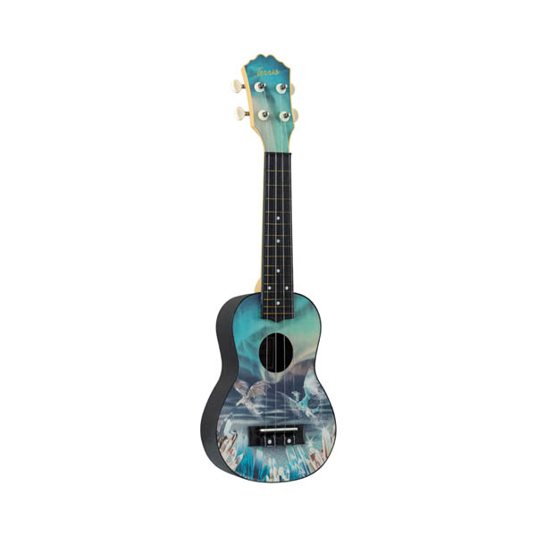 Размер - soprano (сопрано)Верхняя дека - липаКорпус - пластикГриф - пластикНакладка на гриф - пластикЦвет - синийРисунок - Драконы