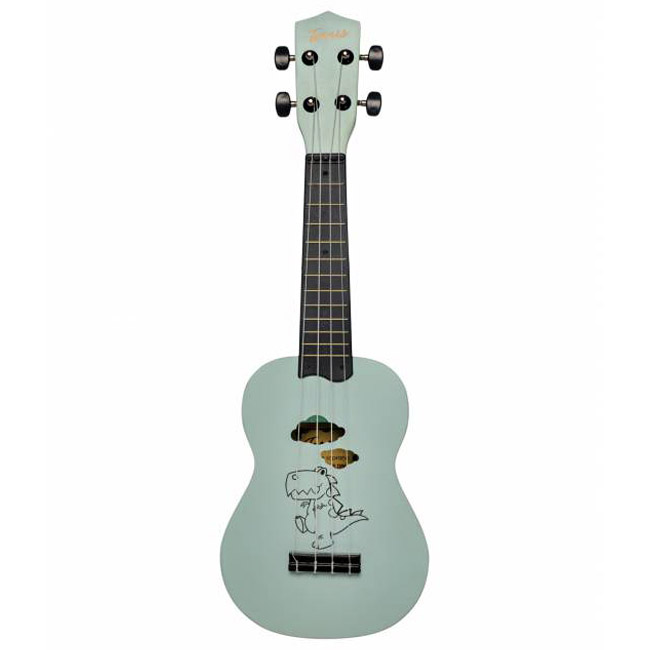 TERRIS PLUS DINO - укулеле небесно-голубого цвета, на верхней деке которой изображен динозаврик, а резонаторное отверстие выполнено в форме облачков.Данная модель укулеле идеально подходит для детей, путешествий и игре при любой погоде!