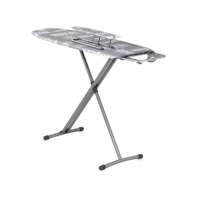 Общие характеристики:Длина рабочей поверхности, см - 122 Ширина рабочей поверхности, см - 39 Основа рабочей поверхности - Металл Основной цвет - Серый Материал чехла - Тефлоновое покрытие Характеристики:Наличие розетки Регулировка по высоте - 55 - 90 см Подставка для утюга Подрукавник