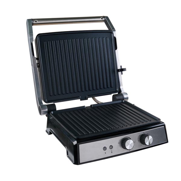 Параметры электросети, В/Гц - 220-240 / 50-60Мощность, Вт - 2000Цвет - нержавеющая сталь, чёрныйМатериал корпуса - металлТип управления - механическийНастраиваемый таймер - 30 минРазмер рабочей поверхности, мм - 280x230Размер изделия, мм - 357x340x140Вес, кг - 3,45Антипригарное покрытие на водной основеРежим барбекю – открытие на 180°Регулировка высоты верхней крышкиРегулируемый термостатФункция прессаТаймер до 30 минутСъемный поддон для сока и маслаУдобная ручка с защитой от нагреванияЗащита от перегрева