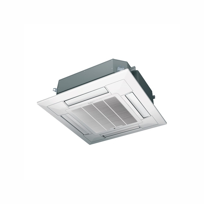Общие характеристики:Тип - кассетная сплит-система Класс энергопотребления - C Основные режимы - охлаждение / обогрев Максимальный воздушный поток - 30 куб. м/мин Мощность в режиме охлаждения - 10400 Вт Мощность в режиме обогрева - 11700 Вт Дополнительные режимы - режим вентиляции (без охлаждения и обогрева), автоматическое поддержание температуры, самодиагностика неисправностей, ночной режим Режим осушенияУправление:Пульт дистанционного управленияТаймер включения/выключенияОсобенности:Уровень шума внутреннего блока (мин/макс) - 39 дБ / 48 дБ Тип хладагента - R 410A Фаза - трехфазный Регулировка скорости вращения вентилятора - количество скоростей - 3 Другие функции и особенности - возможность регулировки направления воздушного потока, система против образования льда, функция запоминания настроек Минимальная температура для эксплуатации кондиционера в режиме обогрева - -15 °С Дополнительная информация - подмес свежего воздуха - опция; размеры декоративной панели 950x950x55 Габариты:Внутреннего блока сплит-системы или мобильного кондиционера (ШxВxГ) - 83.5x83.5x24 см Наружного блока сплит-системы или оконного кондиционера (ШxВxГ) - 90.3x85.7x35.4 см