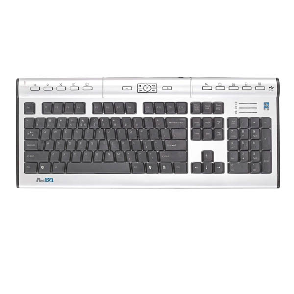 Назначение - для настольного компьютераИнтерфейс подключения - USBТип клавиатуры - мембранная, тонкаяЦвет - серебристыйОбщее количество клавиш - 121Количество дополнительных клавиш - 17Размеры - 462x23x190 мм