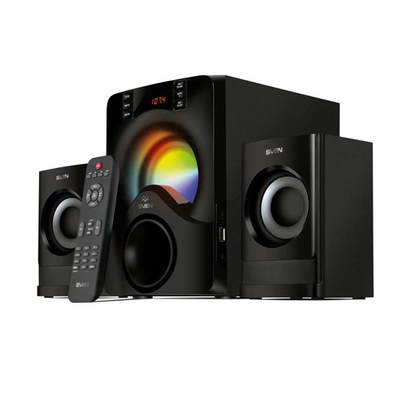 Акустическая система:Формат — 2.1Суммарная мощность — 40 ВтТип подключения — проводное / беспроводноеИнтерфейсы подключения — USB, BluetoothПитание — от сетиУправление — на корпусе колонок / пульт ДУДисплей Подсветка — RGBФронтальные колонки:Мощность — 2×20 ВтКоличество полос — 2Диапазон частот — 150–20000 ГцМатериал корпуса — пластикРазмеры (В×Ш×Г) — 95×152×95 ммСабвуфер:Мощность — 20 ВтДиапазон частот — 40–150 ГцМатериал корпуса — деревоДополнительные функции:Воспроизведение мультимедиа — USB, тюнер
