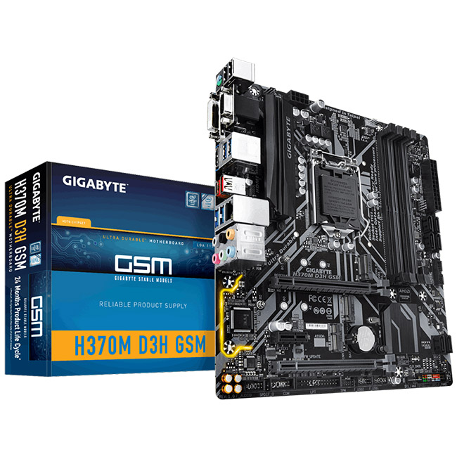 Общие параметрыМодель: GIGABYTE H370M D3H GSMГод релиза: 2018Форм-фактор и размерыФорм-фактор: Micro-ATXВысота: 244 ммШирина (мм): 230 ммПроцессорСокет: LGA 1151-v2ЧипсетЧипсет: Intel H370BIOS: AMIUEFIПоддержка SLI/CrossFire: CrossFire XПамятьФорм фактор поддерживаемой памяти: DIMMТип поддерживаемой памяти: DDR4Количество слотов памяти: 4Минимальная частота памяти: 2133 МГцМаксимальная частота памяти (МГц): 2666 МГцКоличество каналов памяти: 2Максимальный объем памяти: 64 ГБКонтроллеры накопителейТип и количество портов SATA: 6x SATA 6Gb/sКоличество разъемов M.2: 3Форм-фактор M.2 накопителя: 22110, 2280, 2260, 2242, 2230Поддержка NVMeРежим работы SATA RAID: 5, 0, 10, 1Слоты расширенияКоличество слотов PCI-E x16: 2Количество слотов PCI-E x1: 1Режимы работы нескольких PCI-E x16 слотов: 16-0, 16-4Версия PCI Express: 3.0Задняя панельВнутренние коннекторы USB на плате: 4 x USB 2.0, 2 x USB 3.2 Gen1Количество и тип USB на задней панели: 1 x USB 3.2 Gen2 Type A, 4 x USB 3.2 Gen1 Type A, 1 x USB 3.2 Gen2 Type C, 2 x USB 2.0Видео выходы: 1x VGA (D-Sub), 1x DVI-D, 1x HDMIКоличество аналоговых аудио разъёмов: 6Порты PS/2: комбинированныйКоличество сетевых портов (RJ-45): 1АудиоЗвук: Realtek HD AudioЗвуковая схема: 7.1Чипсет звукового адаптера: Realtek ALC892СетьЧипсет сетевого адаптера: Intel GbE LANСкорость сетевого адаптера: 1000 Мбит/сОхлаждениеРазъем питания процессорного кулера: 4-pin4-pin разъемы для системных вентиляторов: 3ПитаниеОсновной разъем питания: 24-pinРазъем питания процессора: 8-pinКоличество фаз питания: 6Дополнительные параметрыПодсветка элементов платыИнтерфейс LPTКомплектация: заглушка для задней панели ввода/вывода, диск с ПО, документацияОсобенности, дополнительно: фирменная утилита @BIOS, 3D OSD, RGB Fusion, фирменная функция Auto Green, утилита Q-Flash, поддержка EasyTune