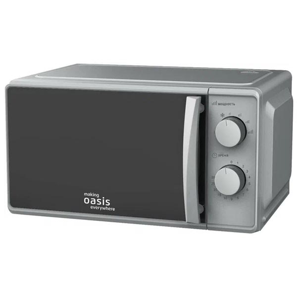 Объем - 20 лТип управления - механическийРежимы работы - солоНоминальная потребляемая мощность - 1100 ВтНоминальная выходная мощность - 700 ВтКоличество уровней мощности - 6Режим размораживанияЧастота микроволн - 2450 МГцПараметры электросети - 220-230/50 В/ГцГабариты (ВхШхГ) - 24.3х44.6x35.8 смВес - 9.4 кгЦвет - серебристыйУправление и функции:Таймер - 30 минСигнал окончания приготовленияОткрывание дверцы - ручка