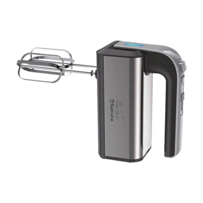 Общие характеристикиТип: ручнойМощность: 500 ВтЧисло скоростей: 5Дополнительные режимы: турбоНасадки: крючки для замешивания теста, венчик для взбиванияКоличество насадок: 4Материал корпуса: пластикЦвет: серебристый, черныйОсобенностиКнопка отсоединения насадокЗащита от перегрева