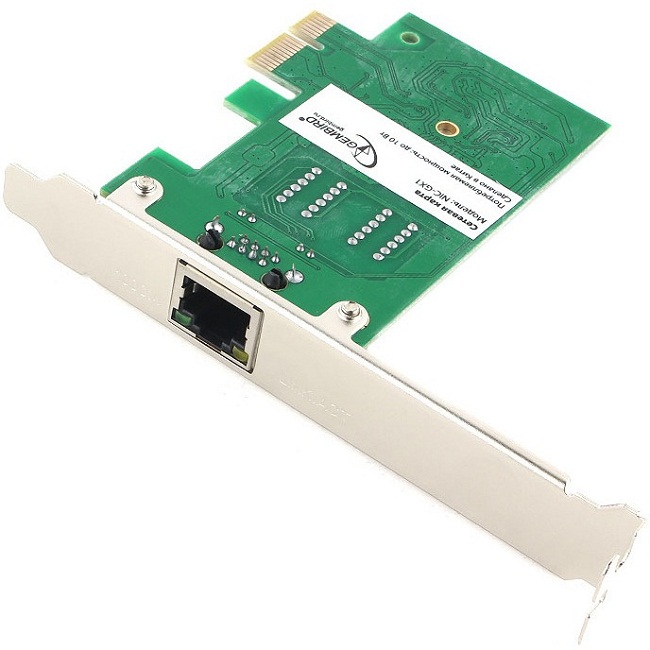 Интерфейс PCI-EСкорость передачи данных 1 Гбит/cКоличество разъемов RJ-45 1Автоматическое определение MDI/MDIXПоддержка 802.1pПоддержка 802.1Q VLANПоддержка 802.3x Flow ControlКоординация прерыванийПоддержка Wake-on-LANПоддержка ОС: Windows 98/Me/NT/2000/XP/Vista/MAC OS/Unix/Linux/NovellЧип Realtek RTL8168B