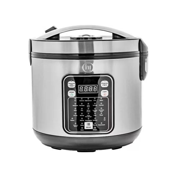 ЧашаПолезный объем чаши: 5 лАнтипригарное покрытиеФункцииТаймерМаксимальное время отсрочки старта: 24 чПоддержание температурыВремя поддержания температуры: 24 чЗвуковой сигналПрограммы приготовленияКоличество автоматических программ: 31Приготовление на паруРазогревСтерилизациУправлениеТип управления: электронныйИндикацияДисплейИндикация включенияИндикация времени приготовленияИндикация режима работыКорпусМатериал: металл, пластикСъемная крышкаДлина сетевого шнура: 1,2 мОтсек для сетевого шнураБезопасностьЗащита от детейПитаниеМаксимальная потребляемая мощность: 900 ВтКомплектацияМерная емкостьЛожечкаКонтейнер-пароваркаГабариты и весВысота: 28 смШирина: 27 смГлубина: 28 смВес: 2,79 кг