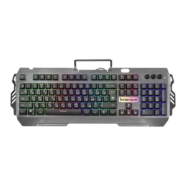 Тип – клавиатураТип клавиатуры – мембраннаяПодключение – проводнаяИнтерфейс подключения – USBФормат – полноразмернаяИгроваяПодсветка – RGBБлок NumPadЗащита от попадания водыИсточник питания – интерфейсный кабельСовместимые ОС – WindowsРаскладка – русская и английскаяОбщее количество клавиш – 104Мультимедийные клавишиЭргономичная конструкцияТканевая оплетка кабеляДлина кабеля – 1.5 мЦвет корпуса – черныйМатериал корпуса – пластикКомплект поставки – клавиатураДлина – 16.7 смВысота – 4 смВес – 980 г