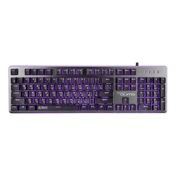 Тип — клавиатураТип клавиатуры — мембраннаяПодключение — проводнаяИнтерфейс подключения — USBПодсветка — красная, синяя, фиолетоваяБлок NumPad Источник питания — через интерфейсный кабельСовместимые ОС — WindowsРаскладка — русская и английскаяОбщее количество клавиш — 104Материал корпуса — металл, пластикКомплектация — клавиатураРазмеры — длина 43 см, высота 3.5 смВес — 920 грамм