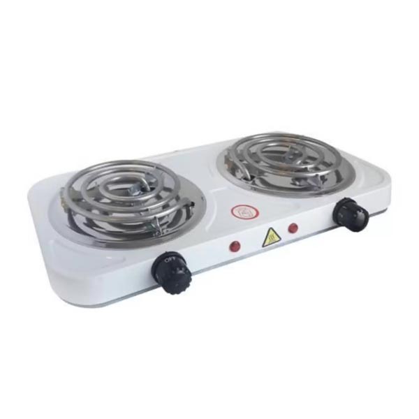 Электрическая плита, 2000 Вт2 конфорки типа спиральСветовой идикатор работы для каждой конфорки, регулировочные термостатыРегулировка мощностиПокрытие варочной поверхности из нержавеющей сталиВысокие прорезиненные ножкиЗащита от перегрева.