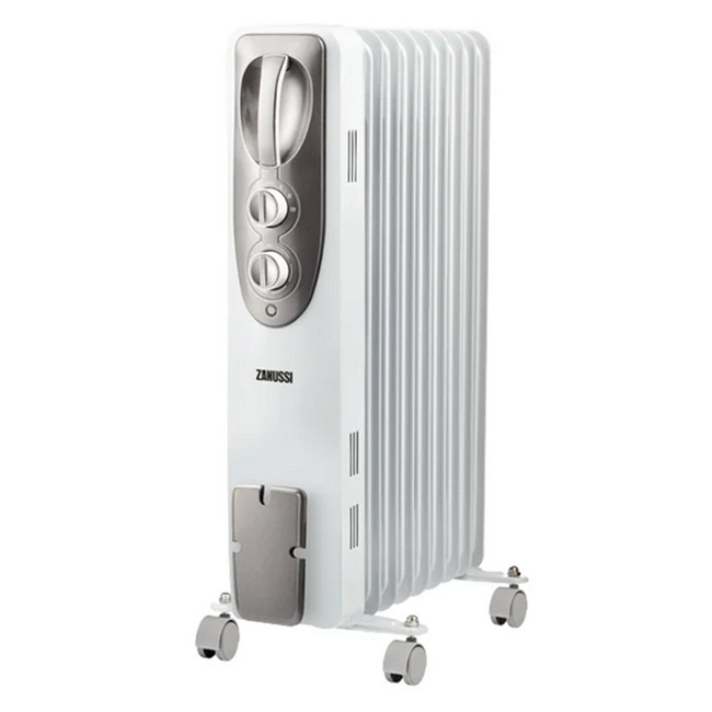 Технические характеристикиТип: масляный радиаторРегулировка мощностиУровни мощности: 2000/1200/800 ВтНапряжение: 220/230 ВКоличество секций: 9ФункциональностьКоличество режимов работы: 1ТермостатУправление: механическое, регулировка температуры, выключатель со световым индикаторомВарианты монтажа: напольныйОсобенностиЗащитные функции: отключение при перегревеКаминный эффектУдобство использования: отделение для шнура, колесики, ручкаГабариты и весВес: 9.66 кг