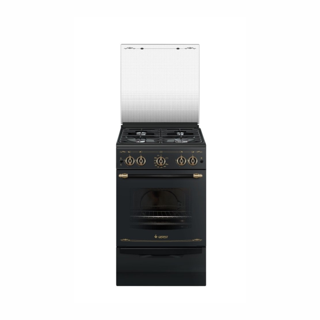 Плита Гефест 5100-02 0183 Черный ретро, Газовая, крышка стекло,таймер