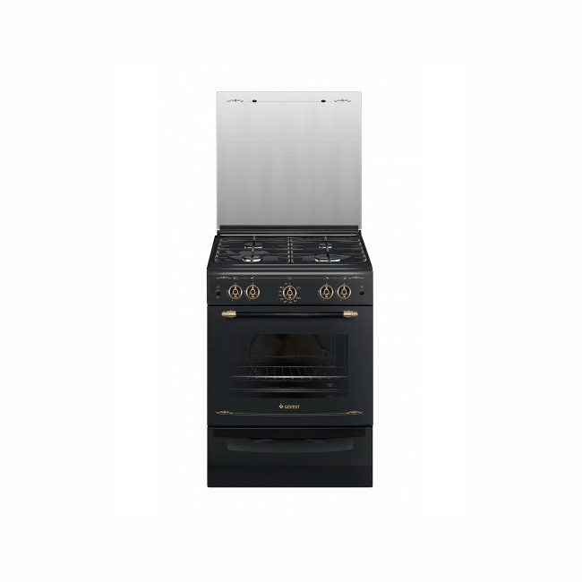 Плита Гефест 6100-02 0187 Черный ретро, Газовая, крышка стекло,без таймера