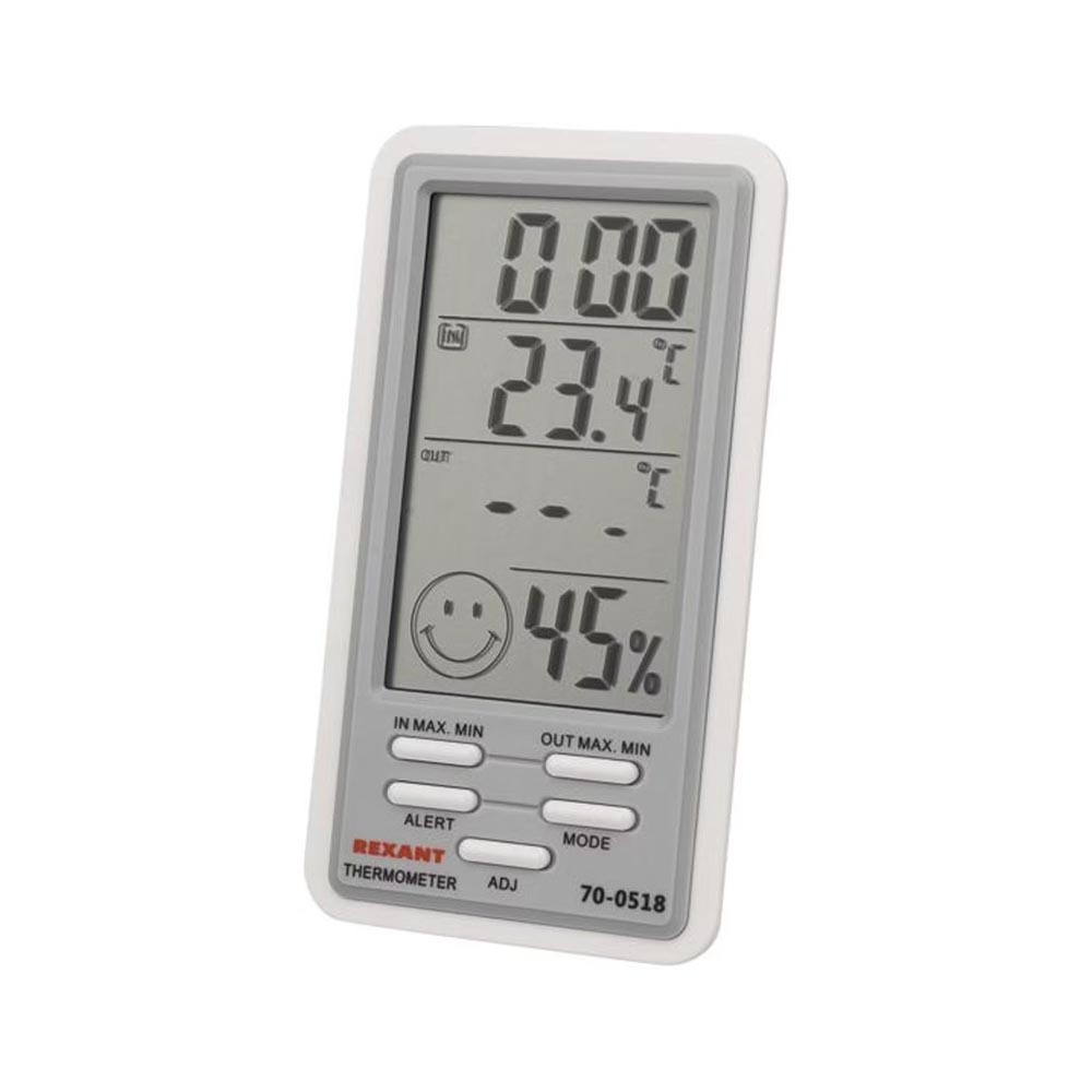 Измерение влажности воздуха: в комнате и на улицеИзмерение температуры: в комнатеМаксимальная измеряемая температура: 90 °CМинимальная измеряемая температура: −50 °CКоличество датчиков в комплекте: 1Тип выносного датчика: проводнойФункции: измерение показаний температуры в помещении и на улице, комнатной влажности, часы, календарь, будильник; регистрирует максимальные и минимальные значения температур; отображает общий уровень метеокомфорта в помещенииЭлементы питания: AAA / мизинчиковая (R03, LR03, FR03)Количество и напряжение элементов питания: 1 × 1.5 ВЦвет: белыйТип крепления: на стену / настольныйГабариты без упаковки (Ш×Г×В): 145×80×24 мм