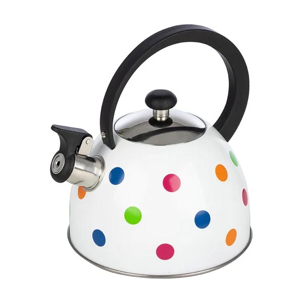 Объем: 2.2 лМатериал корпуса: нержавеющая стальМатериал ручки: пластикКапсульное дноСо свисткомПодходит для газовых плитПодходит для индукционных плитПодходит для электрических плитДизайн: геометрическийЦвет корпуса: разноцветный