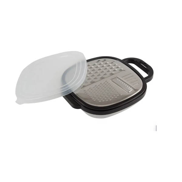 Терка с контейнером и крышкойИзготовлена из нержавеющей сталиИмеет удобный контейнер и крышкуОстрые лезвия ножей гарантируют быструю и равномерную нарезку