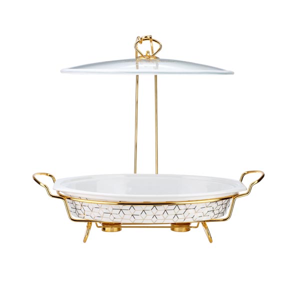 Объем - 2,7 лМатериал - Жаропрочный фарфор, Нержавеющая стальДлина - 38 смКрышка - Стеклянная крышка толщиной 4 мм с силиконовым ободкомСохранение тепла - 1 чТолщина дна - 7 ммПодсвечники - 2 шт / Диаметр 40 ммМытье - Ручная мойкаОсобенности - Внешние стенки украшены узором