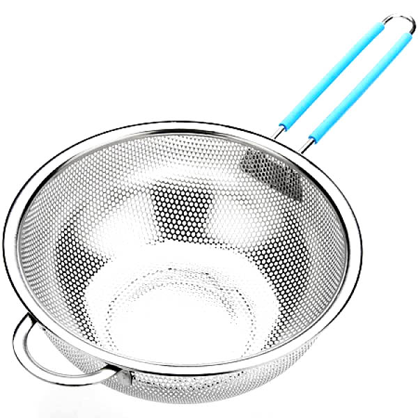 Материал - нержавеющая сталь. Ручка - голубой силикон. Диаметр - 19 см. Высота - 8 см. Вес - 230 г.