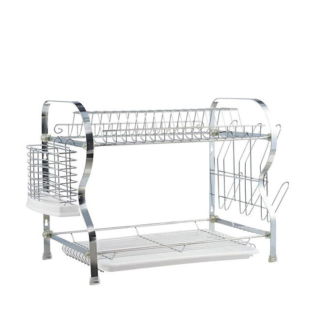 Двухъярусная сушилка для посуды Mayer&Boch выполнена из высококачественной нержавеющей хромированной стали и пластика. В сушилке предусмотрены отделения для тарелок, чашек и столовых приборов. Благодаря конструкции с вместительным поддоном для сбора водыХарактеристики: Сушилка для посуды MB Количество уровней: 2.Материал корпуса: хромированная сталь.Поддон ддя воды: пластик.Подставка для приборов: пластик, сталь.Цвет: серебристый, белый.Размер: высота 45 см, ширина 25 см.Размер упаковки: 46х12х27 см.